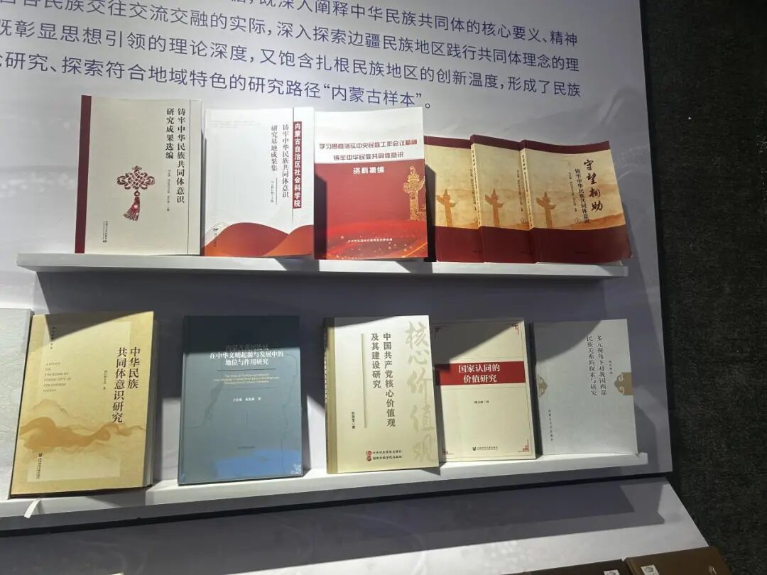 此次展览打破传统展陈模式,将理论探索、历史实证与实践创新有机融合。汇集了自治区铸牢中华民族共同体意识研究(培育)基地、各盟市民委等30多家单位报送的优质成果,类型丰富、数量可观。其中,著作类成果448部、学术论文657篇、校本教材93部,还有宣传画册、视频等多元化宣传成果899种。既有《中华民族交往交流交融史料·内蒙古卷》等厚重学术成果夯实理论根基,又通过西辽河流域红山文化玉礼制度等考古发现,实证了中华民族五千多年文明史。