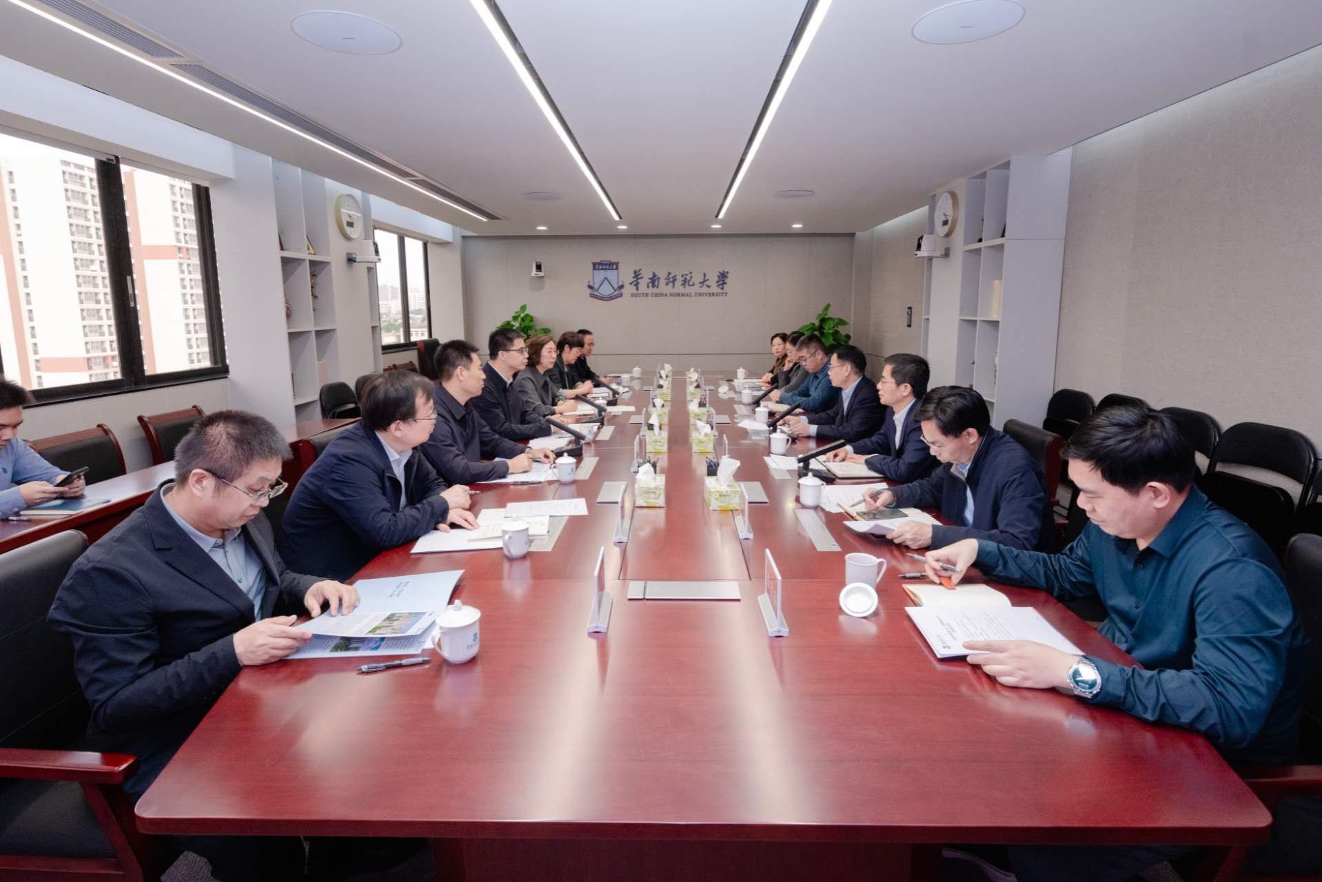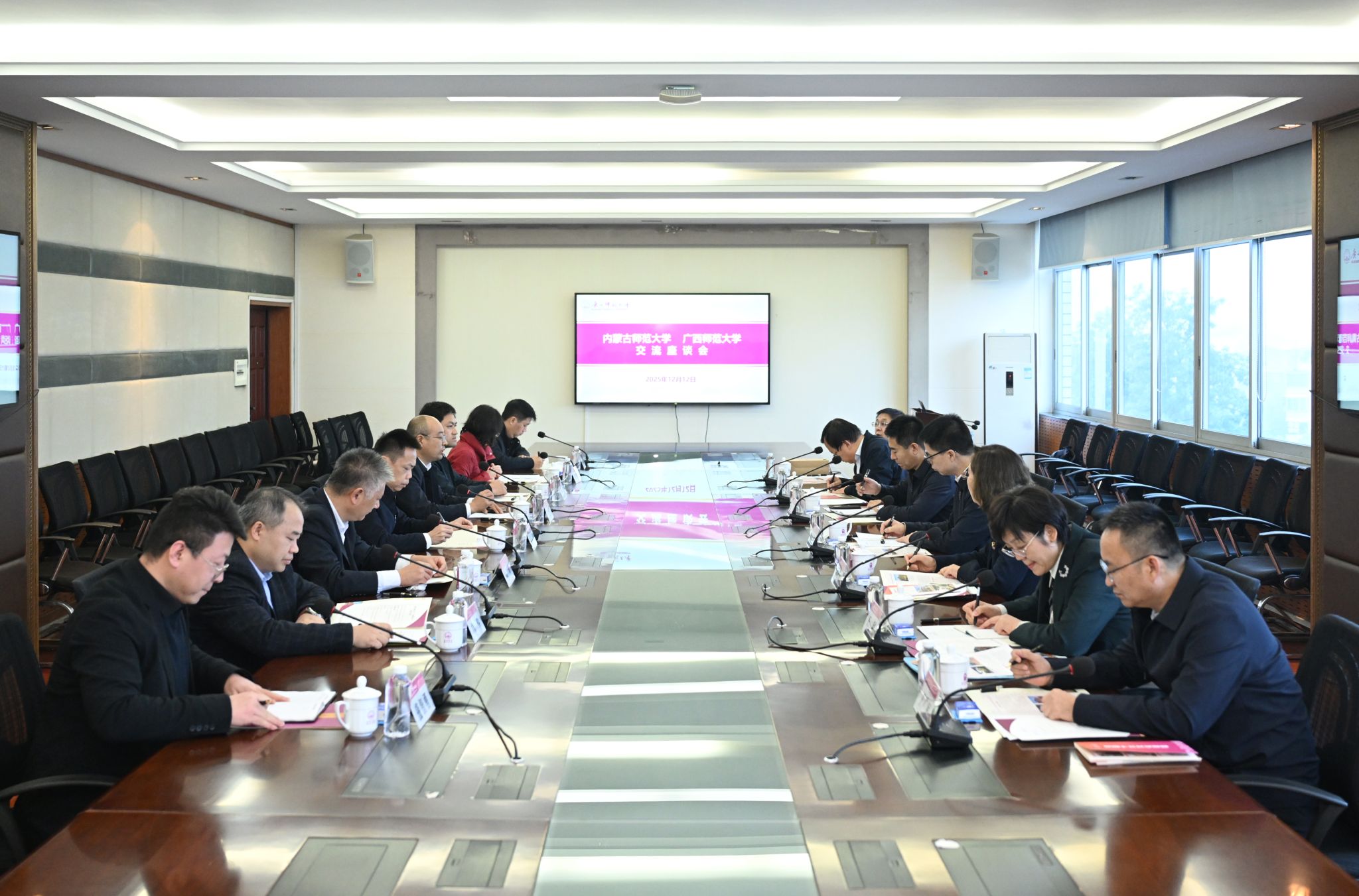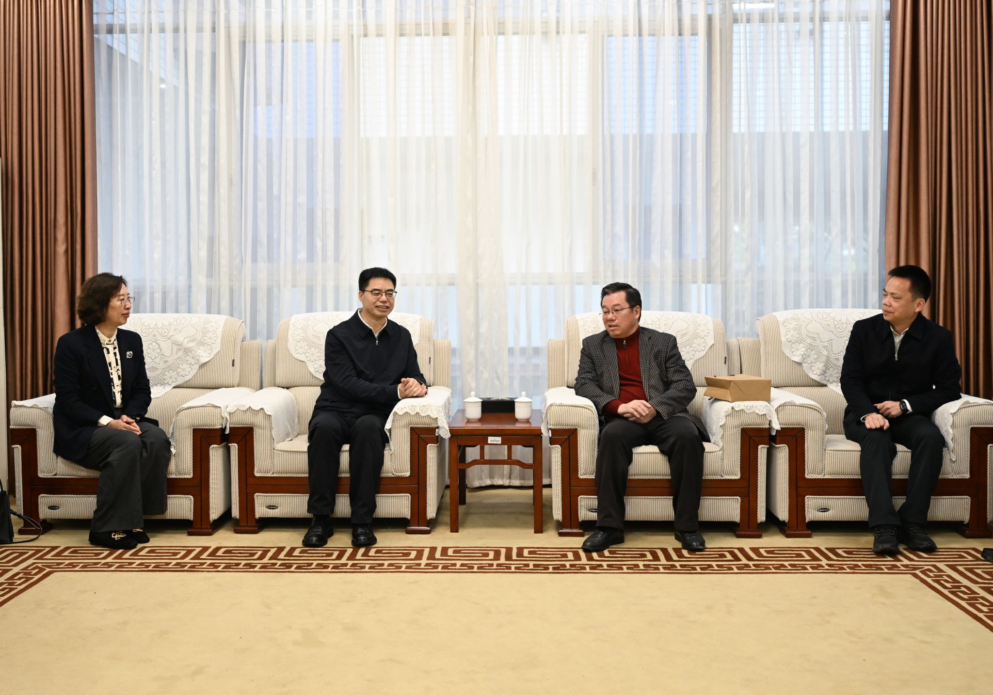 在华南师范大学,张军一行与党委书记王恒胤、党委副书记王岩及相关部门负责同志,围绕教育评价改革、高水平人才引育、校际交流合作、“十五五”规划编制等方面进行了深入交流。双方就成立“粤蒙高校教师发展联盟”达成初步意向,希望通过共享优质课程资源、合作开展师资培训、联合组织教学研讨与学术交流,显著提升教师队伍的整体素质与创新能力,为两地基础教育与高等教育的协同发展注入新的活力。