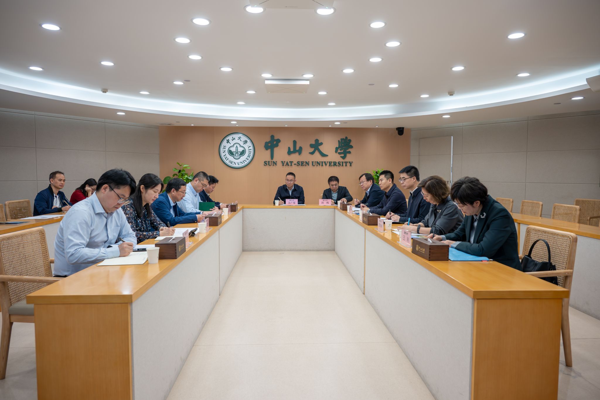 在中山大学,张军一行与校长、中国科学院院士高松及相关部门负责同志进行座谈交流。张军介绍了内蒙古自治区的资源禀赋、产业布局及我校对接区域发展战略的学科规划。双方立足内蒙古自治区产业结构与发展战略需求,重点探讨了如何通过加强科研协同创新、共建跨学科平台、促进人才联合培养,精准推动两校在人工智能、新能源和新材料产业、生物制造等前沿与关键领域的深度合作,助力区域产业升级与创新发展。