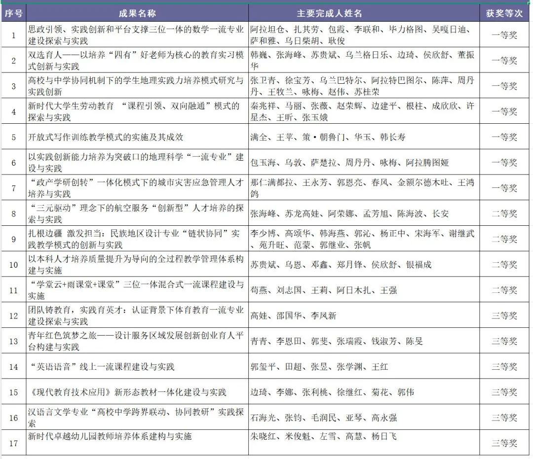 内蒙古师范大学获2022年内蒙古自治区高等教育教学成果奖获奖成果名单