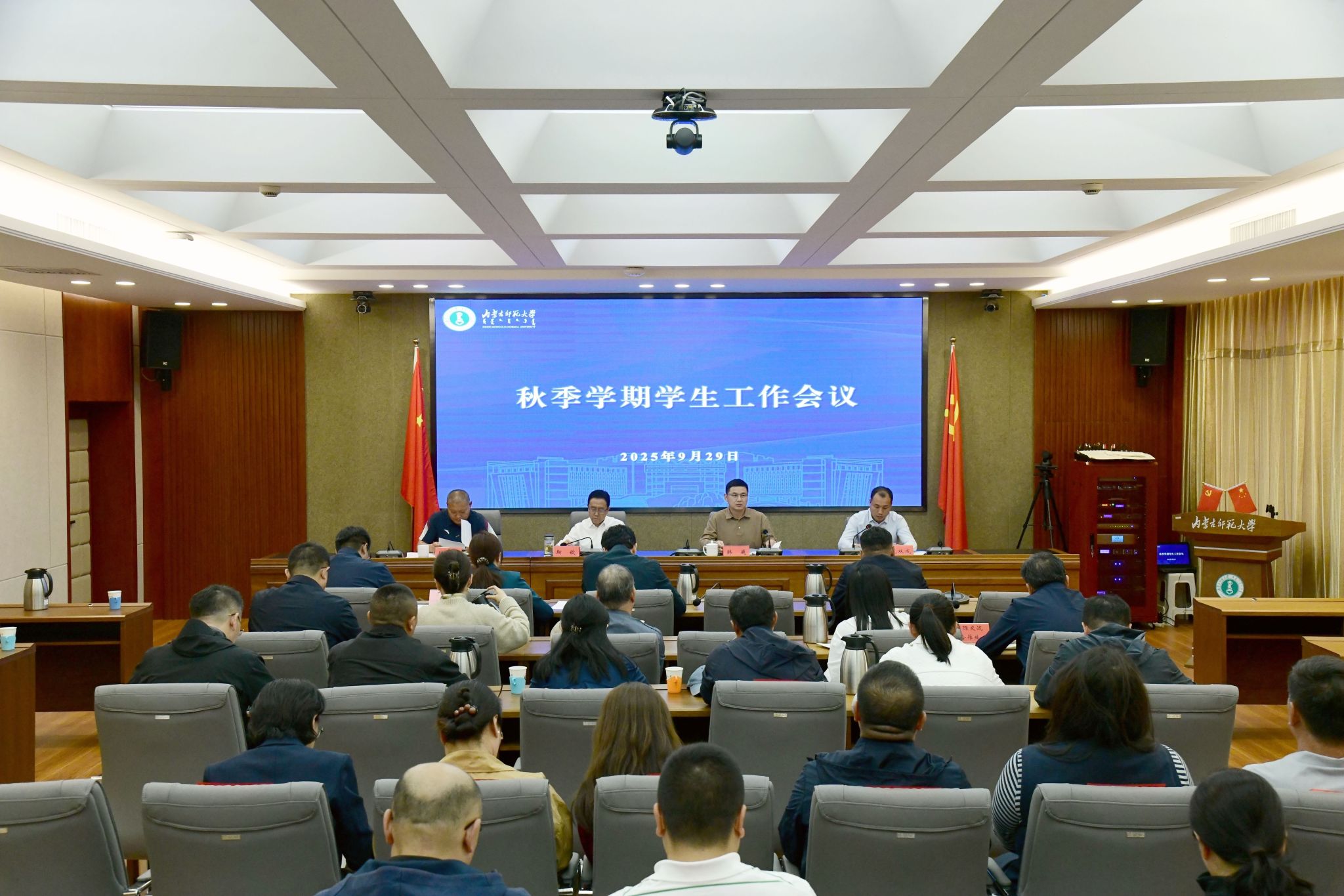本网讯 9月29日下午,我校在盛乐校区行政楼401会议室召开2025年秋季学期学生工作会议。党委副书记斯钦,党委委员、副校长韩巍出席会议并讲话。相关部门、各学院有关负责同志参加会议。