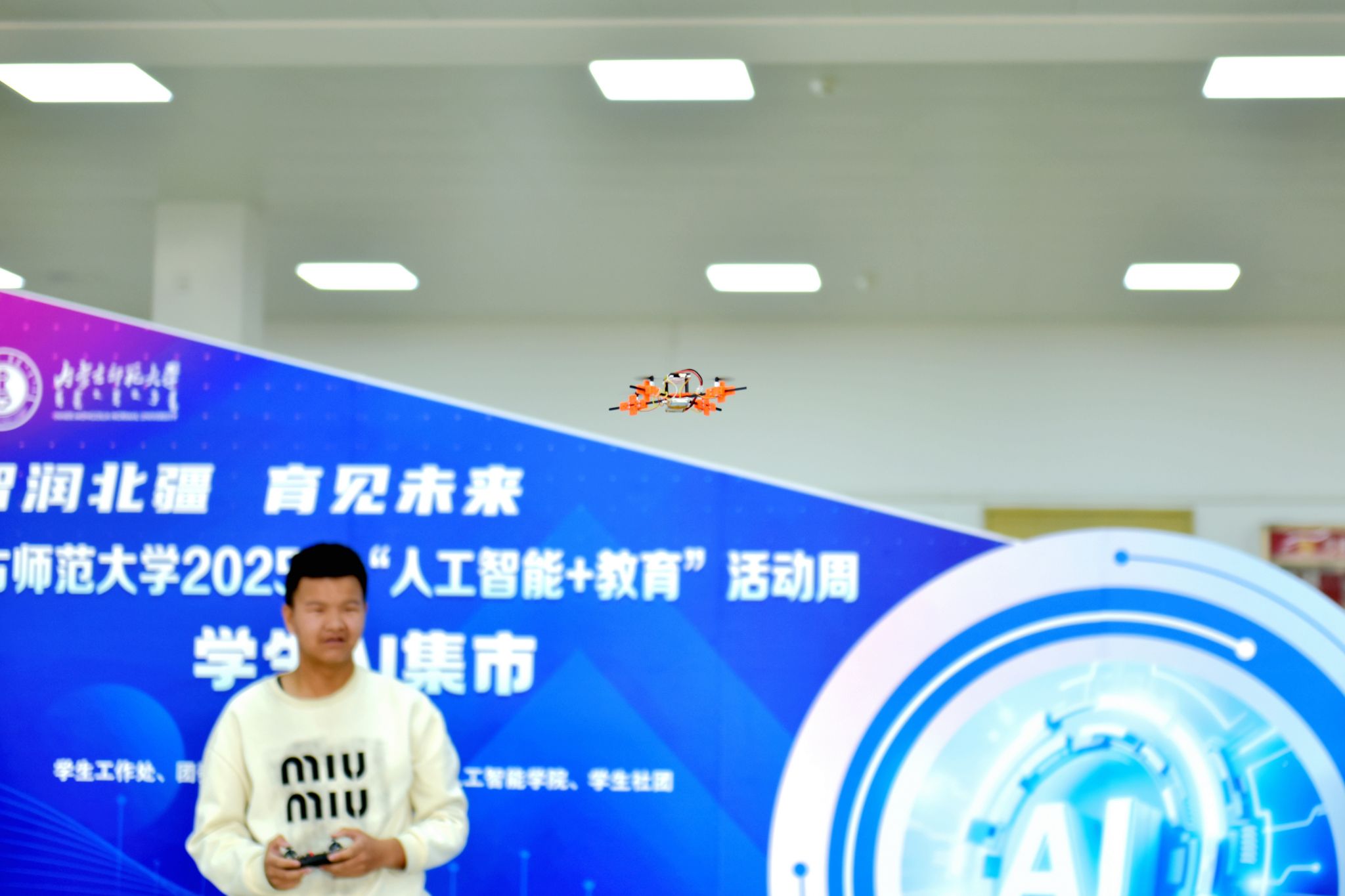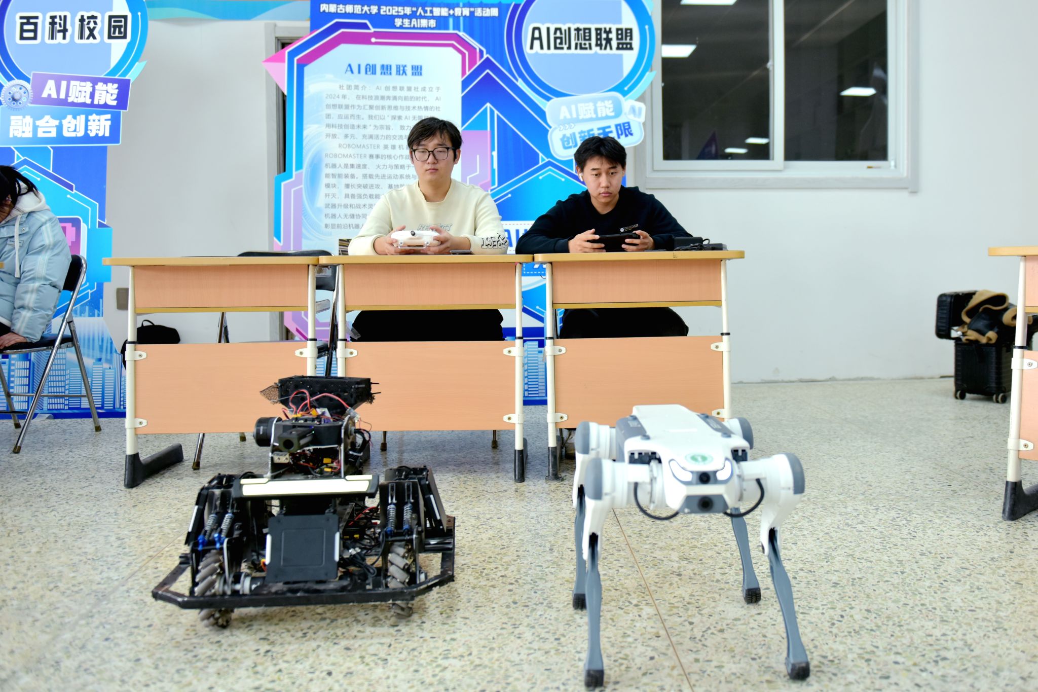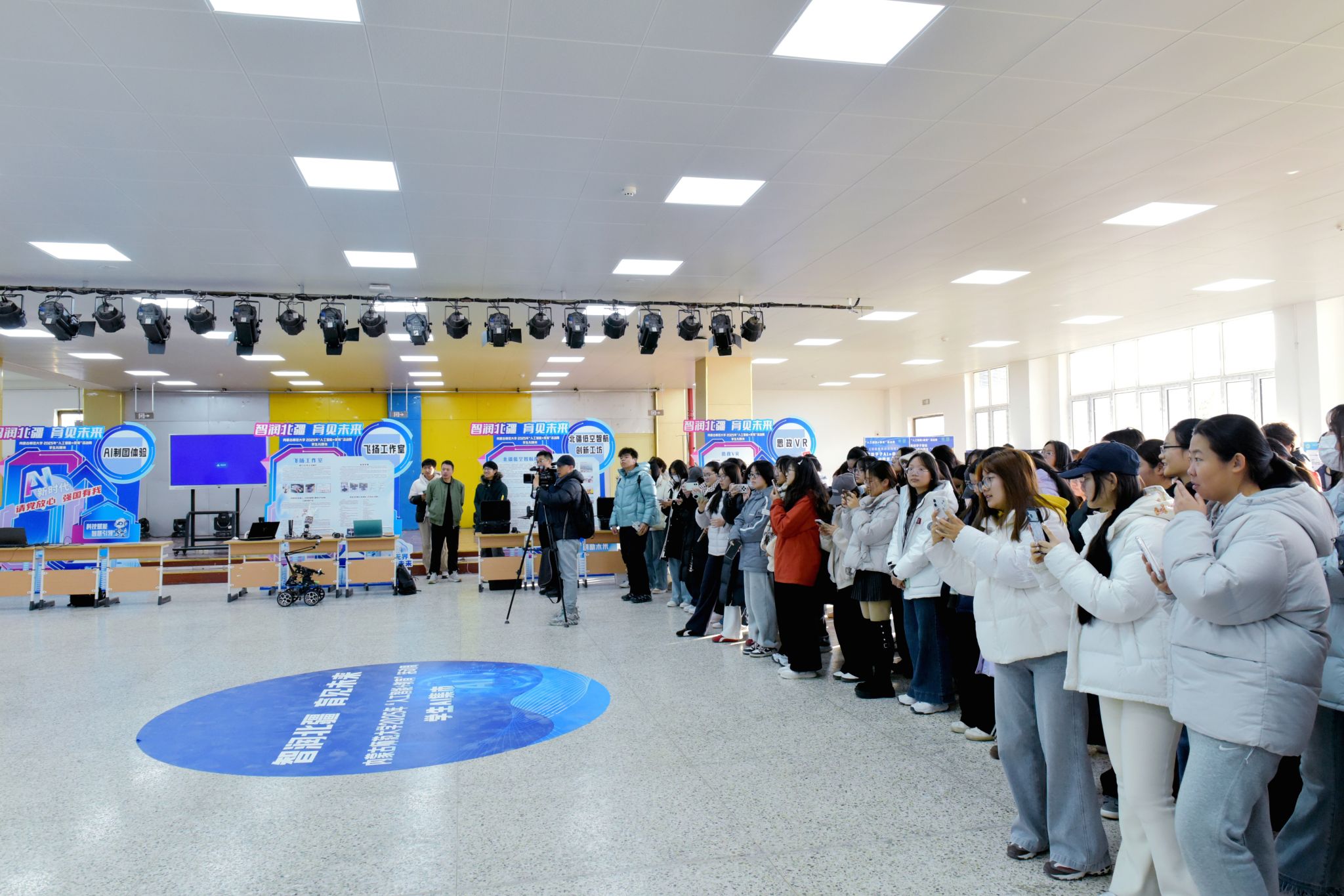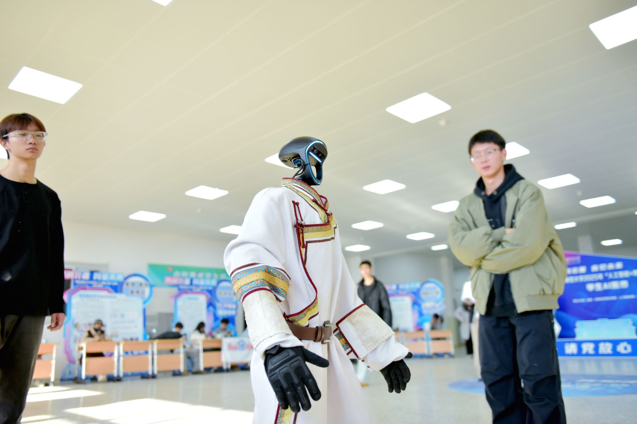 本网讯 为深化人工智能与教育融合,展示学生科技创新成果与应用实践,激发学生科技创新实践能力,11月22日至23日,内蒙古师范大学2025年“人工智能+教育”活动周学生AI集市分别在赛罕校区学生活动中心、盛乐校区学生事务中心一楼多功能厅举办。活动设有应用展示区、竞赛成果展区、互动体验区等,集中呈现学生社团、学生创新团队在AI领域的创新应用,吸引了全校师生积极参与。