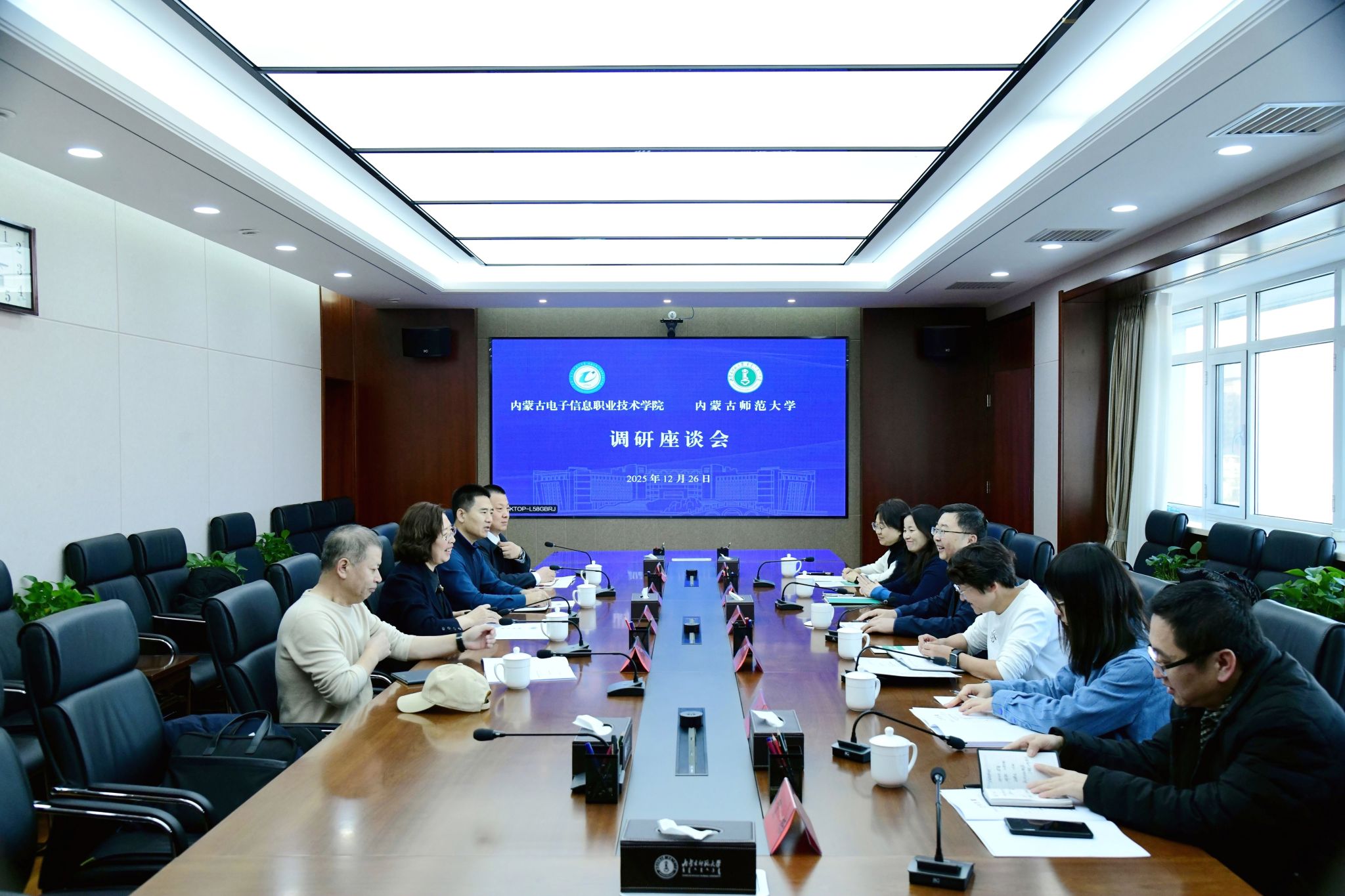 本网讯 12月26日下午,内蒙古电子信息职业技术学院党委副书记、校长林民,党委委员、副校长秦婷一行来我校调研,与我校副校长贾美林及相关单位负责同志进行座谈交流。
