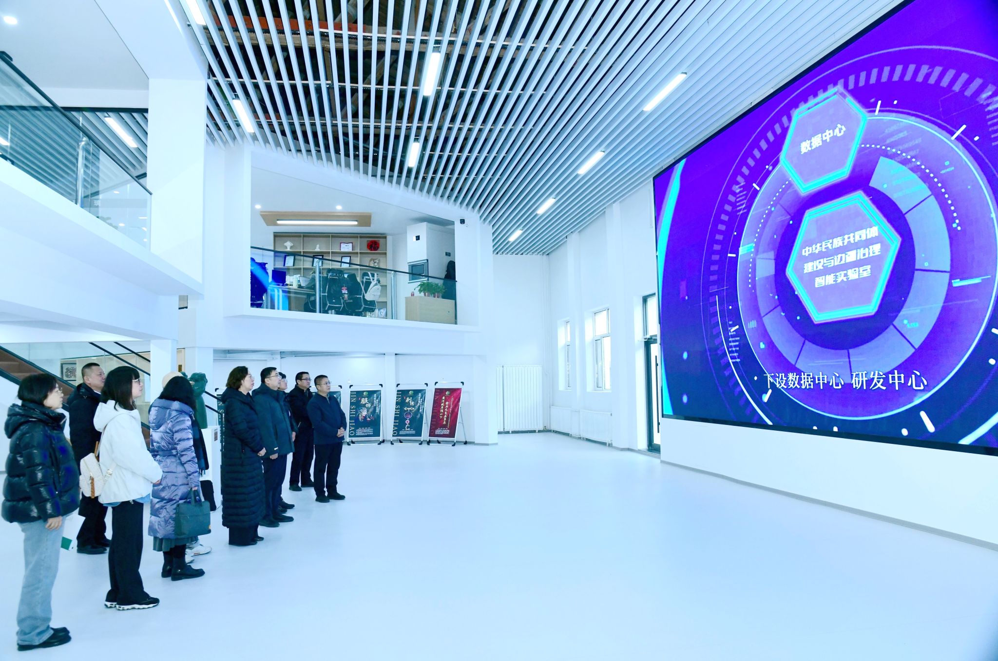 会后,林民一行实地考察了我校智能楼AI驾驶舱实验室及中华民族共同体建设与边疆治理智能实验室。