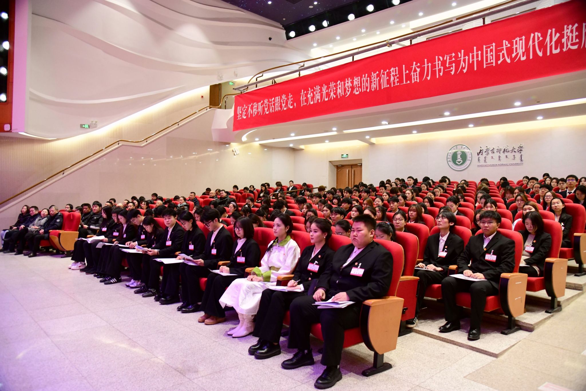 本网讯 12月27日,内蒙古师范大学第三十三次学生代表大会在盛乐校区召开。学校领导李树林、张军、斯钦、贾美林、韩巍、赵晓东出席大会。学校各部门、各学院主要负责同志,各学院党委(党总支)副书记、团学干部及学生代表参加大会。