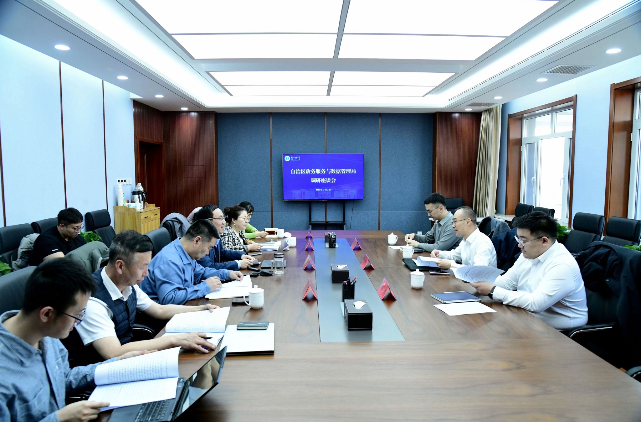 本网讯 3月3日下午,自治区政务服务与数据管理局党组成员、副局长刘钧毅一行来我校调研,就自治区“人工智能+”实施方案征求意见建议。我校党委委员、副校长公茂果,内蒙古自治区人工智能学会常务副理事长付学良出席座谈会。我校相关部门、学院负责同志参加座谈会。