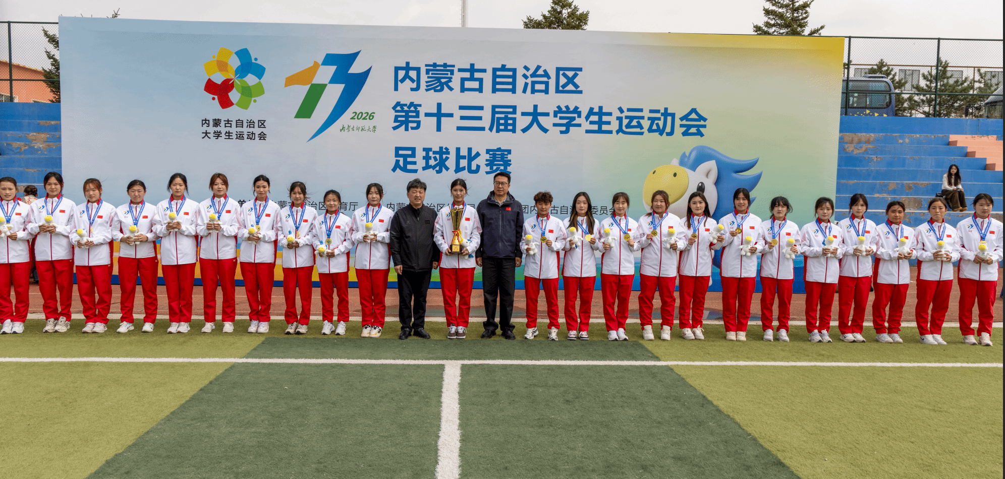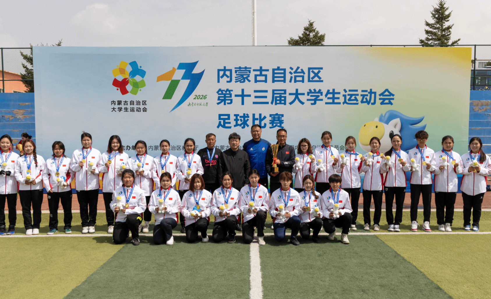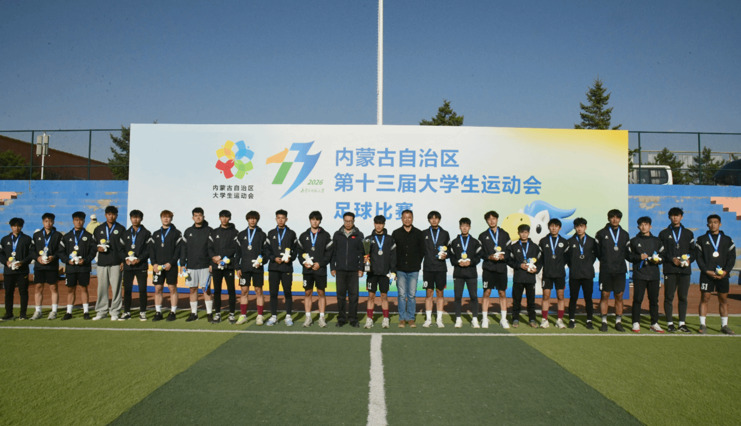 本网讯 4月16日,内蒙古自治区第十三届大学生运动会足球比赛暨2026年内蒙古自治区大学生足球联赛(本科组)赛事圆满收官。我校代表队凭借出色的竞技状态与团队配合,夺得本科超级女子组、本科校园女子组双冠军,荣获本科超级男子组亚军、本科校园男子组第八名,充分展现了学校体育教育的丰硕成果和青年学子昂扬向上的精神风貌。