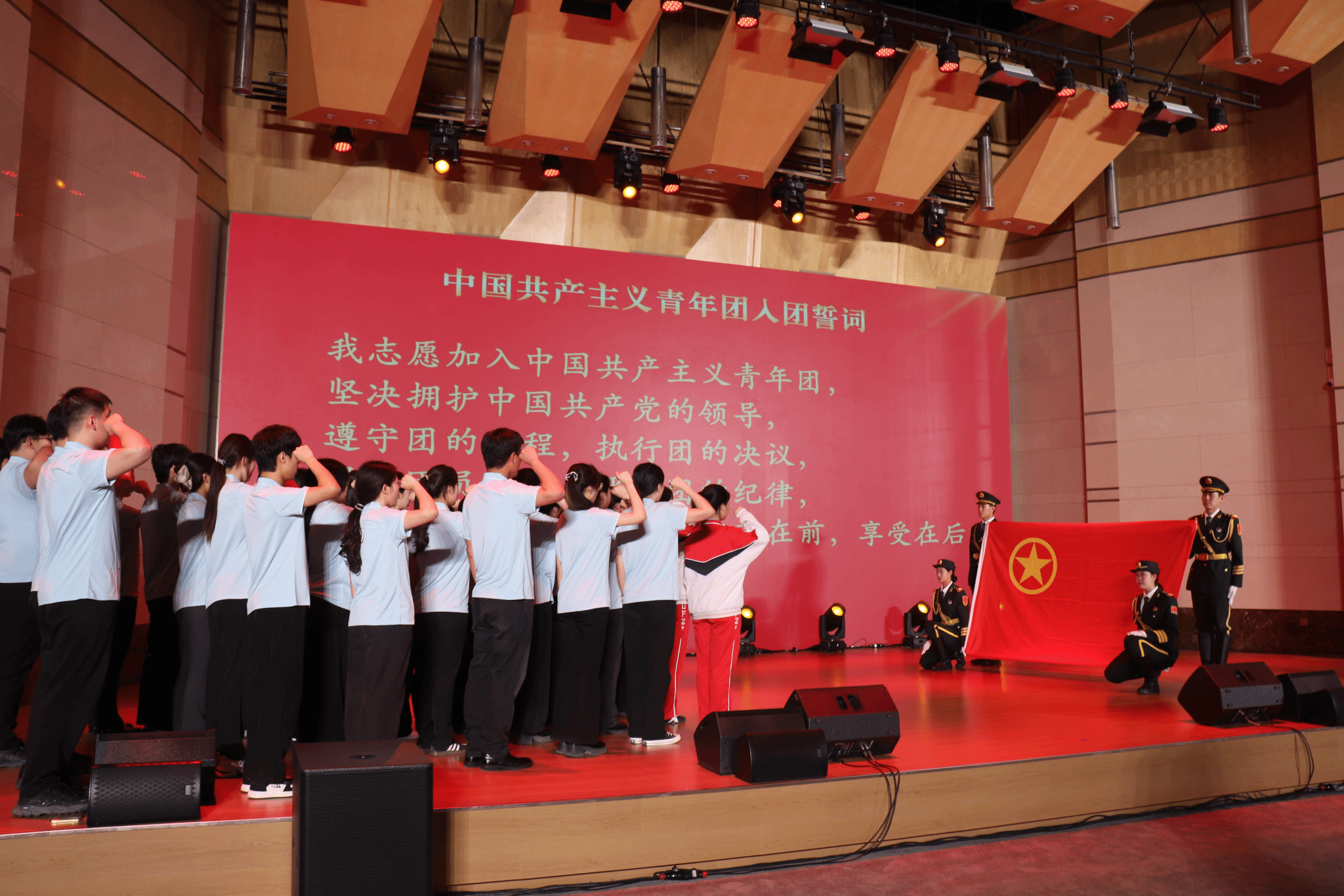 大会开展了“青春心向党 奋进‘十五五’”主题团日活动。在鲜红的团旗下,新团员代表进行了入团宣誓,铮铮誓言铿锵有力、响彻会场,充分展现了青年学生感党恩、听党话、跟党走的坚定信念,以及勇担强国使命、矢志奋斗拼搏的青春决心。为庆祝即将到来的五四青年节,同学们还倾情演绎了情景剧《跨时空的敬礼》、朗诵《那一年,中国青年正十八》、歌曲《民族团结一家亲》等精彩节目,生动再现了广大青年学子与祖国同心、与时代同行的精神风貌。本次活动既是一堂生动的思政课,也是一次深刻的精神洗礼,激励着团员青年在新征程上挺膺担当、奋勇争先,以实干实绩为“十五五”高质量开局贡献青春力量。