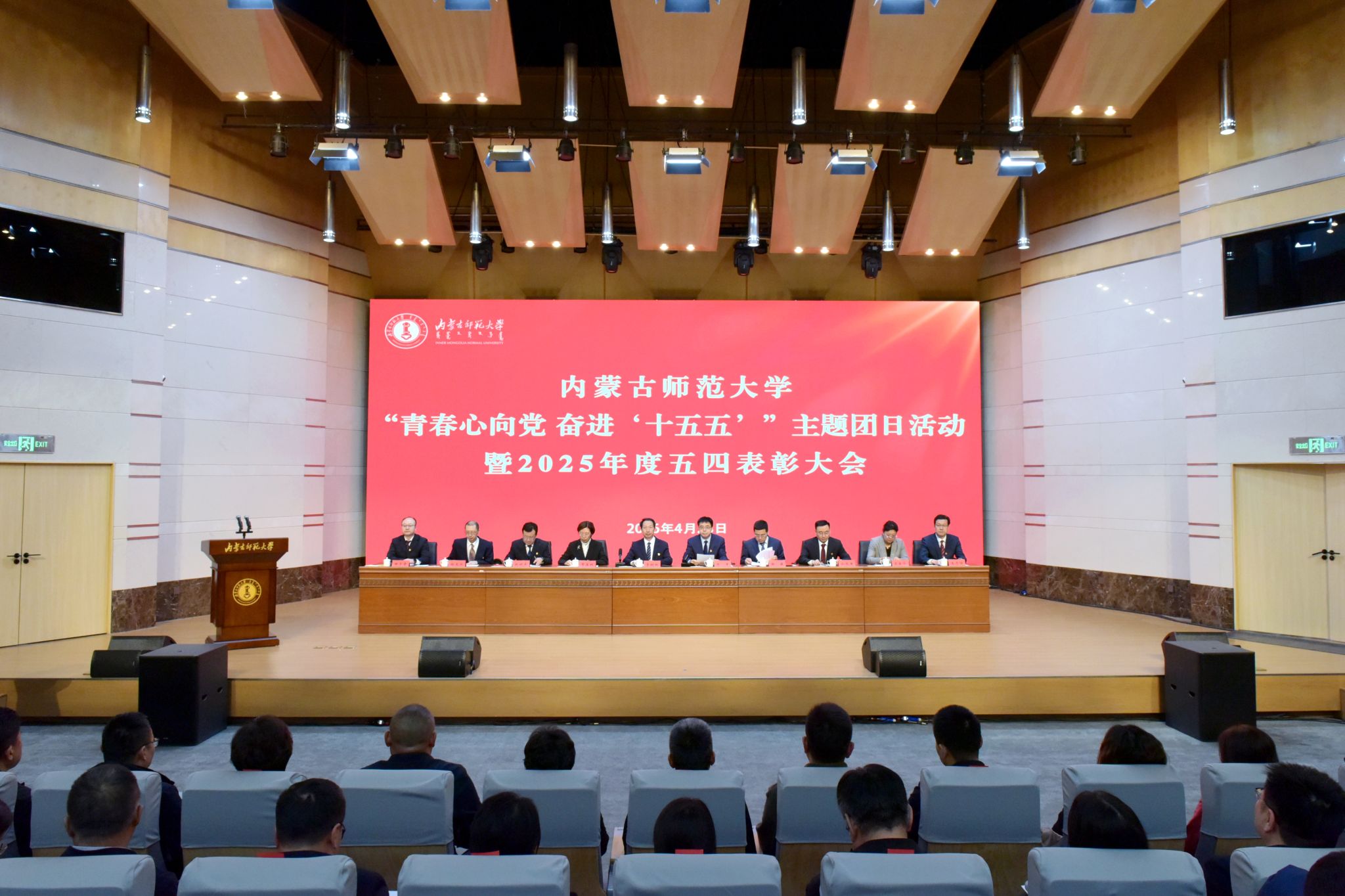 本网讯 4月28日,内蒙古师范大学“青春心向党 奋进‘十五五’”主题团日活动暨2025年度五四表彰大会在赛罕校区学术交流中心逸夫楼报告厅举行。党委书记李树林出席大会并讲话。党委副书记、校长张军主持大会。全体在家校领导出席大会,各职能部门、教辅机构主要负责同志,各学院党委(党总支)书记、副书记、团学干部、获奖师生以及青年师生代表共计500余人参加大会。